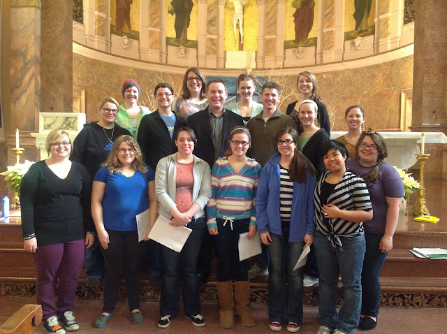 Saturday, January 26, 2013: The SMWC Chorale and Madrigals and Director Michael Boswell welcomed Dr. Michael Murphy to campus for a choir retreat. Michael Murphy is the Director of Choral Activities and Assistant Professor of Conducting at the University of Idaho’s School of Music, where he conducts the Vandaleer Concert Choir, University Chorus and teaches graduate and undergraduate courses in conducting and choral methods. He also serves as the Artistic and Music Director for the Palouse Choral Society and Palouse Festival Orchestra. To learn more about Murphy's work as a conductor, click here.